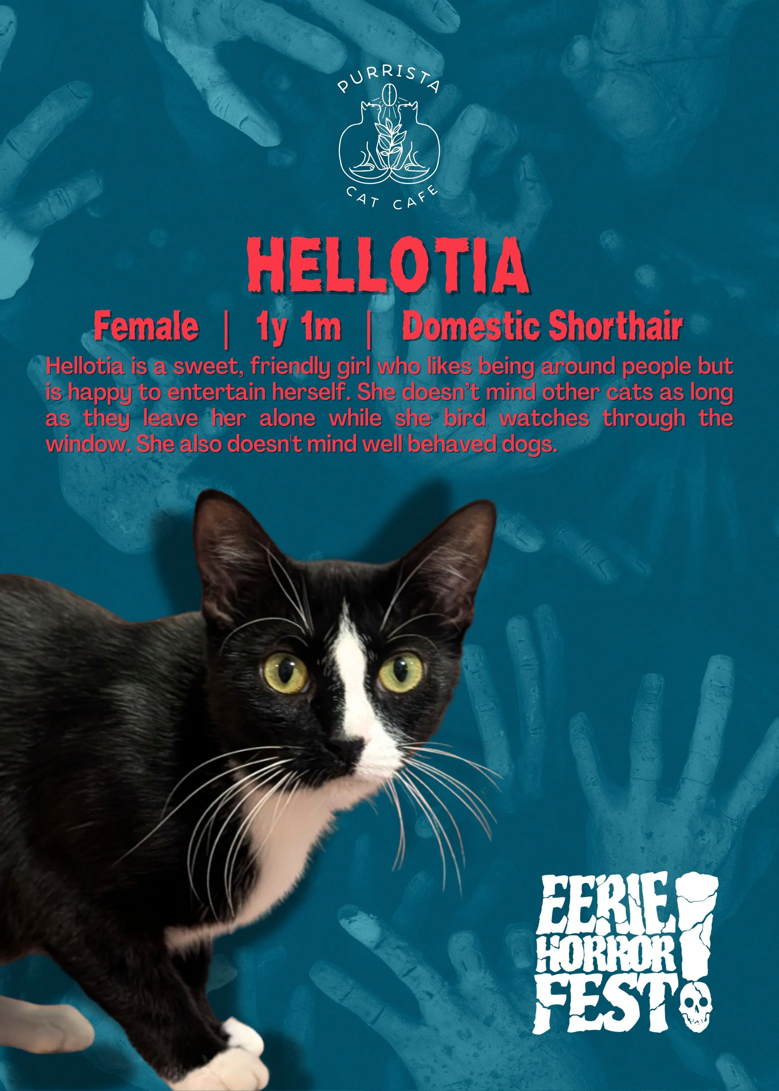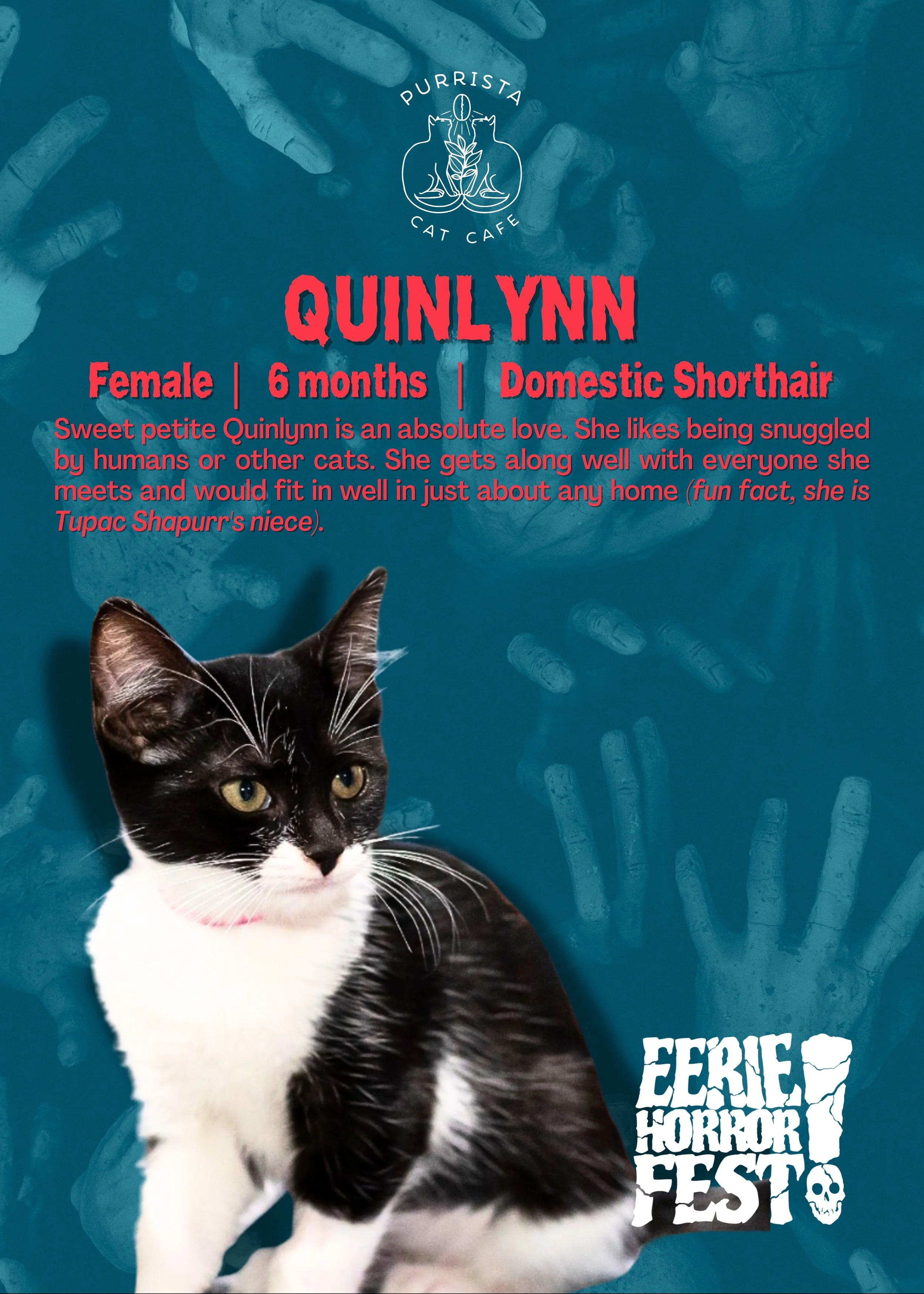 Learn more about all of the adoptable Purrista cats below, ask an adoption representative during your next visit about how to get the adoption process started, or read more about adopting from Because You Care by clicking the link below.