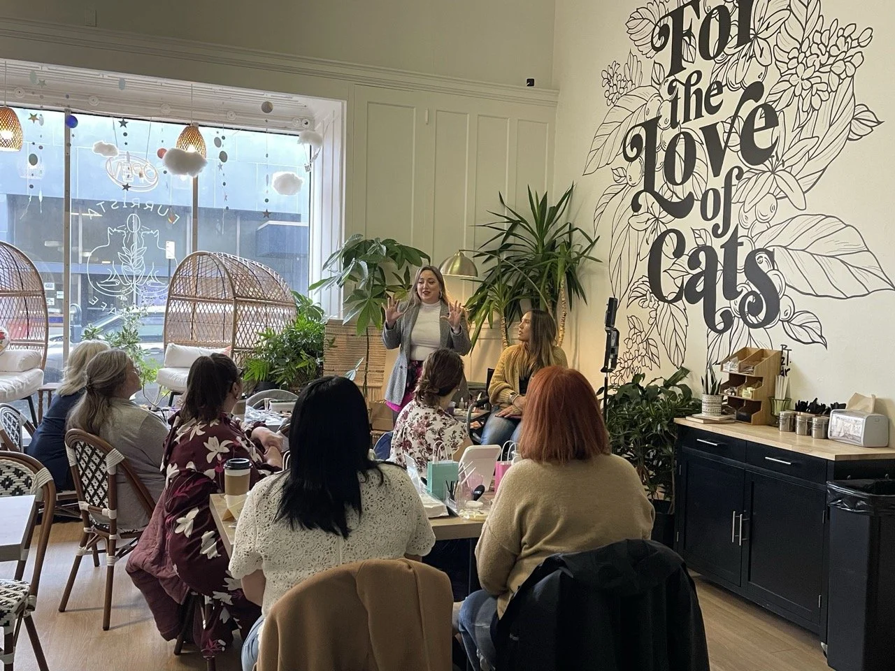 Amanda Rumball hosting a class tutorial on the Cafe side of Purrista.